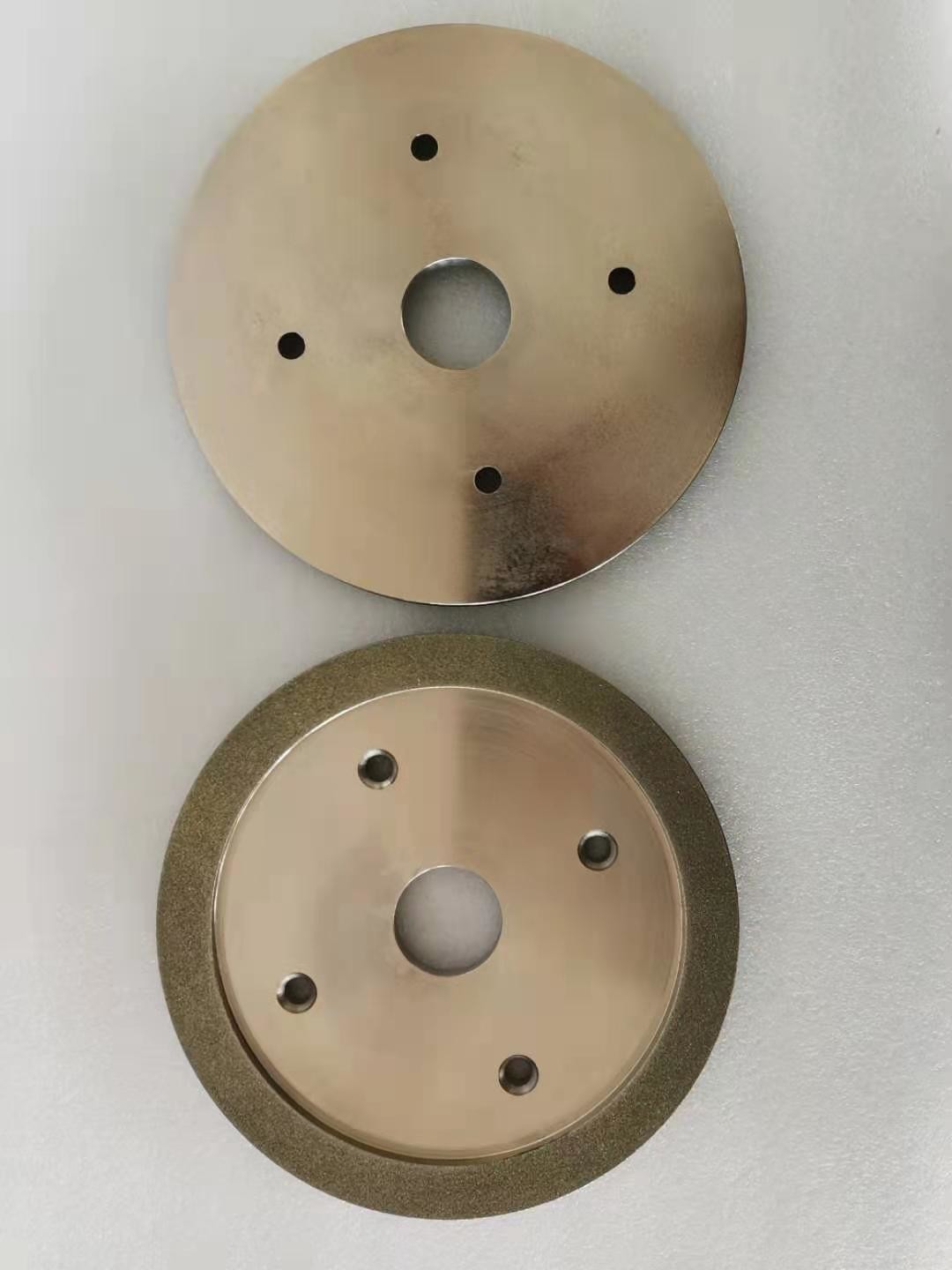 Per le mole del diamante, lo strato di lavoro della mola contiene i grani abrasivi del diamante e gli abrasivi del diamante sono legati al substrato da un legame del metallo. In primo luogo, lo spessore del legame del metallo depositato è 20% dell'altezza dei grani abrasivi del diamante (insabbiare) e poi il legame del metallo è usato per legare (ispessirsi) i grani abrasivi del diamante e lo spessore è circa 2/3 dell'altezza dei grani abrasivi. Compreso il diamante che veste le ruote, le ruote di diamante per la molatura o taglio.