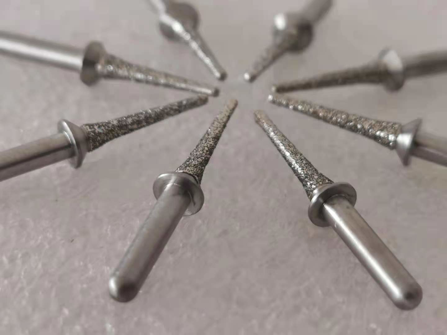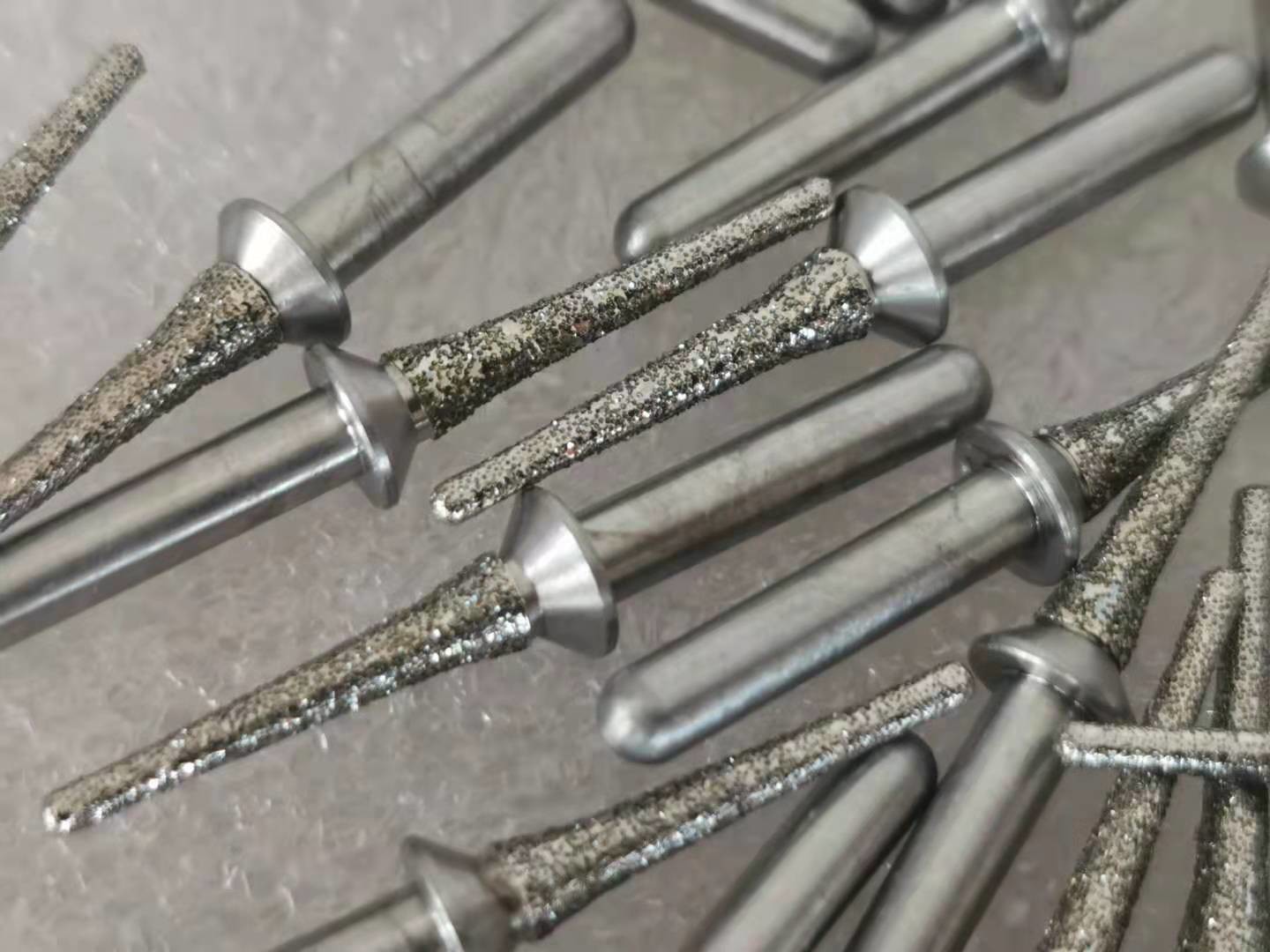 Descrizione: Questi mandrini caratterizzano gli stinchi acciaio temperato ed il diamante a più strati ha ricoperto le superfici. Le particelle del diamante sono legate sul mandrino con il processo «di Electrogrip», che massimizza l'esposizione della particella del diamante che assicura un'azione cuttting libera che notevolmente riduce il calore e l'usura