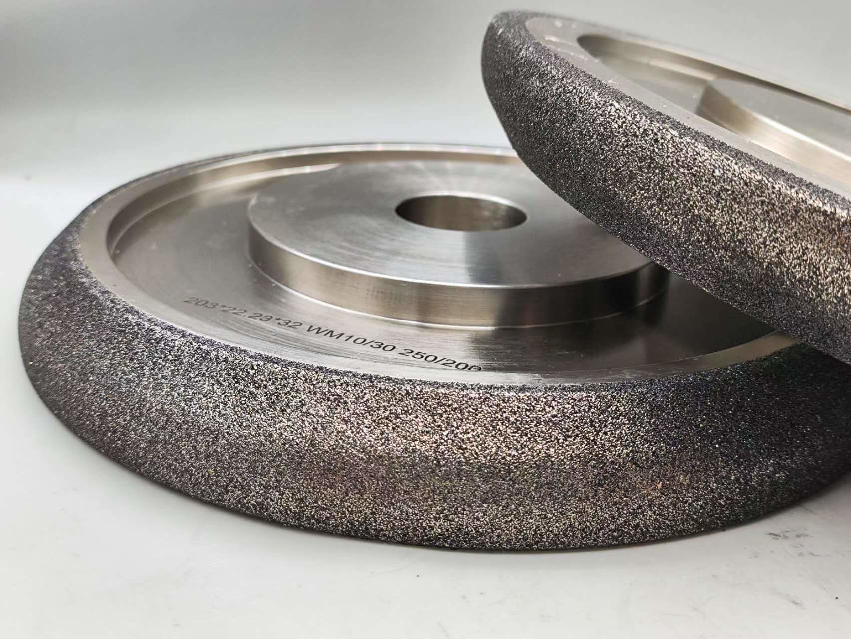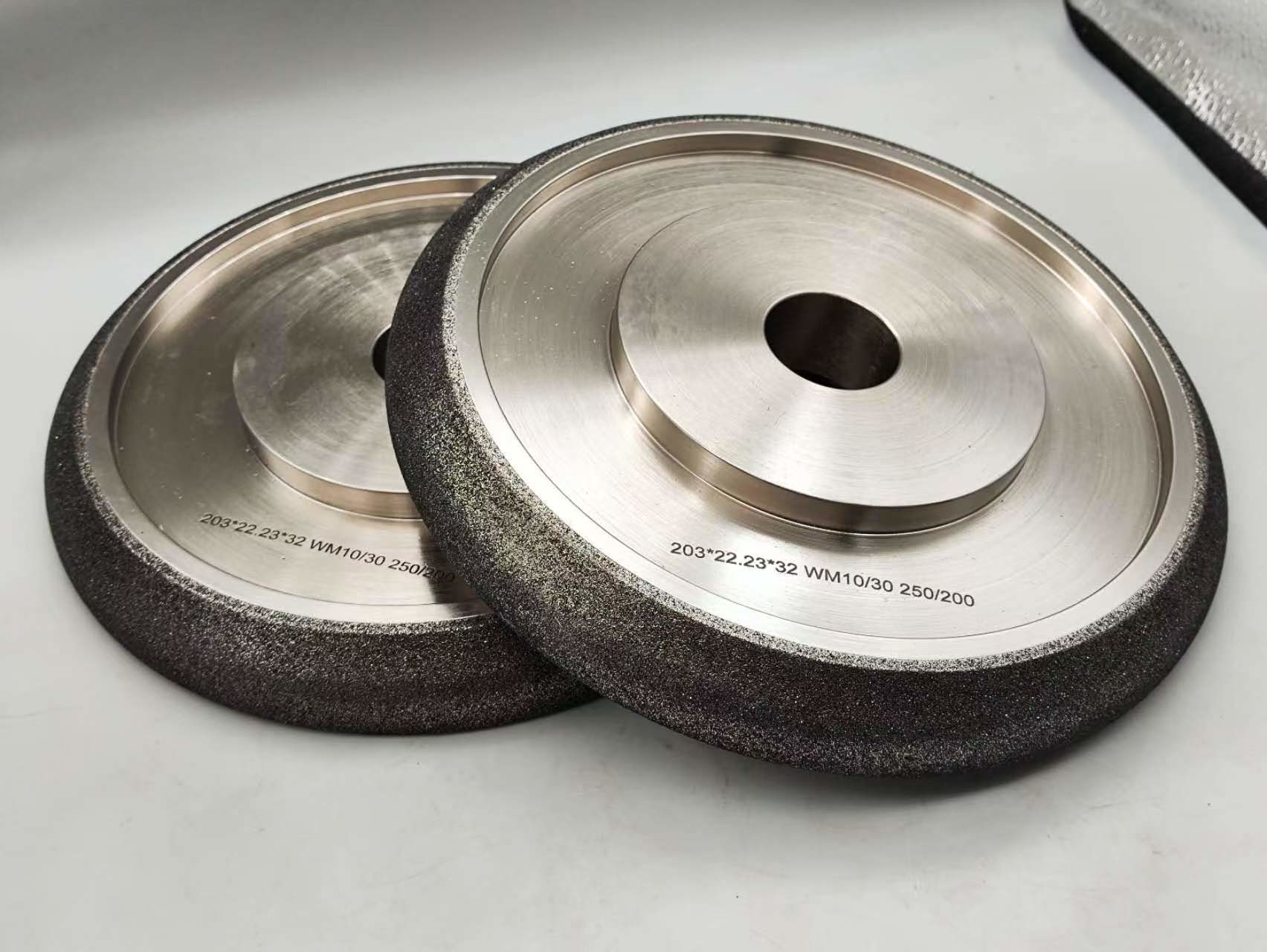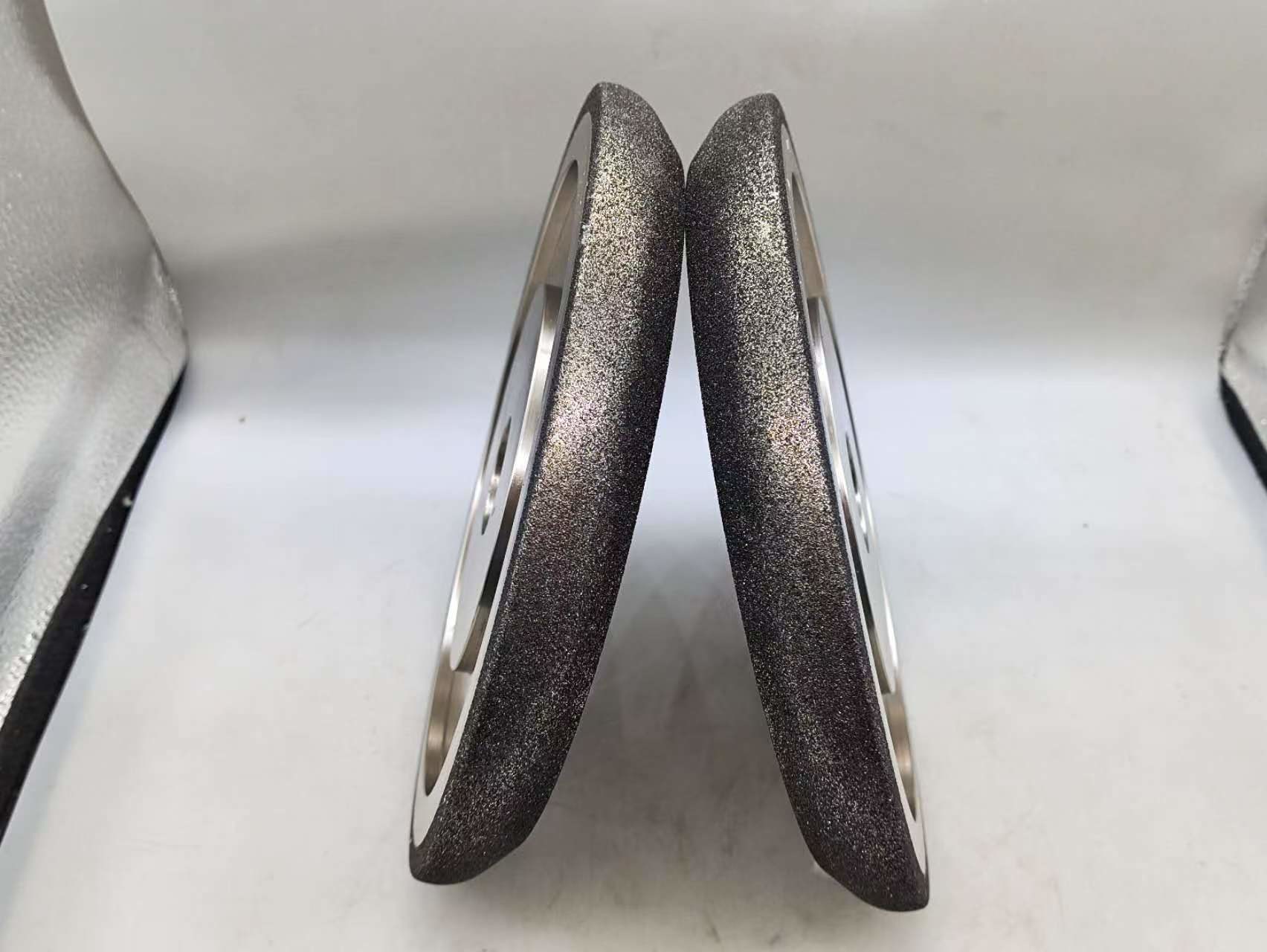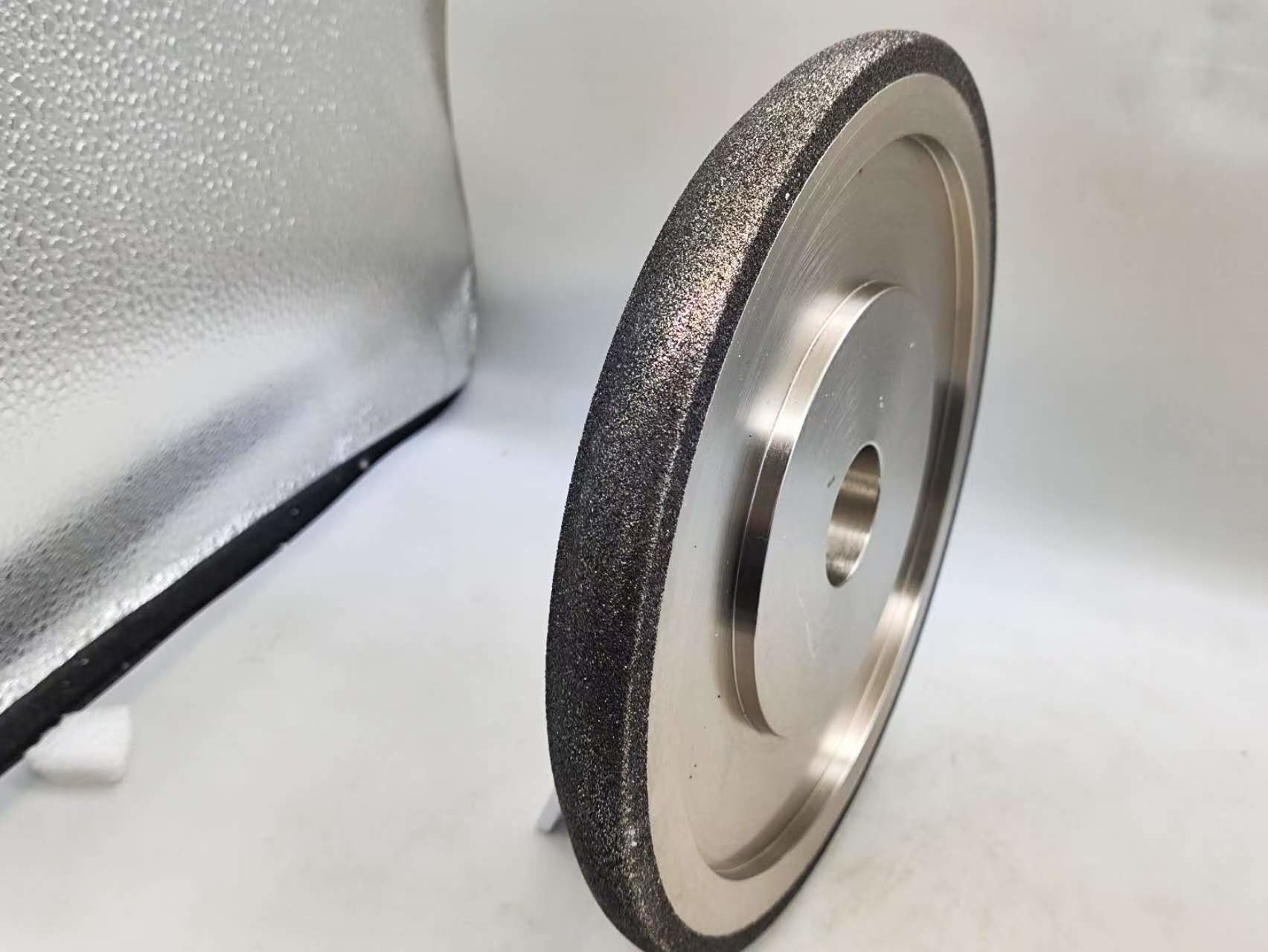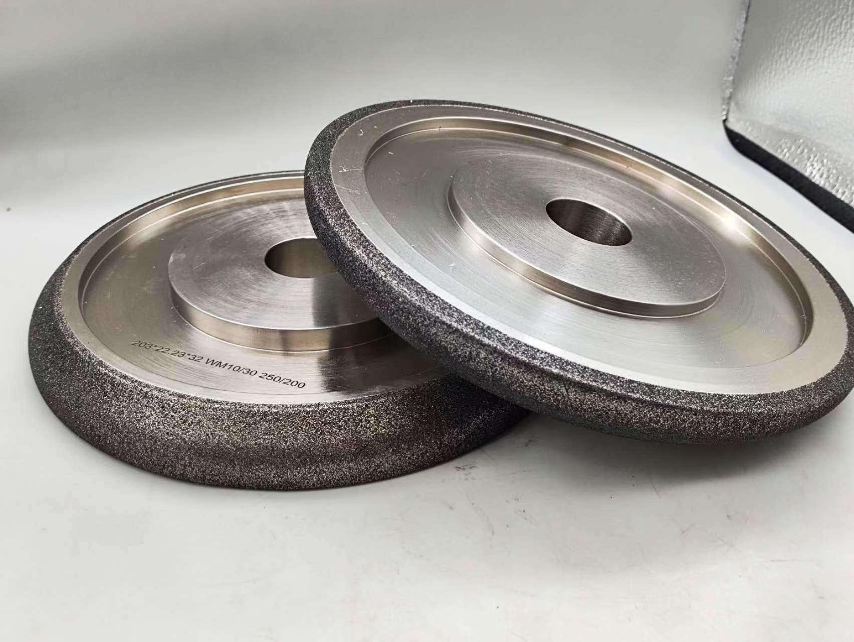 Le rotelle di macinazione CBN o Nitruro di boro cubico sono elettroplate e rivestite di nichel.Crea un legame più aggressivo rispetto ad altre applicazioni e manterrà una forma più a lungoSono progettati solo per affilare seghe a fascia di legno e non devono essere utilizzati per altre applicazioni.