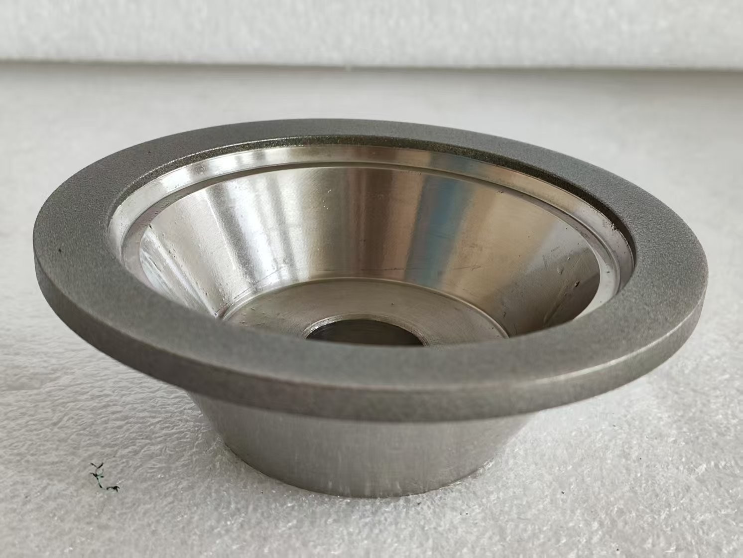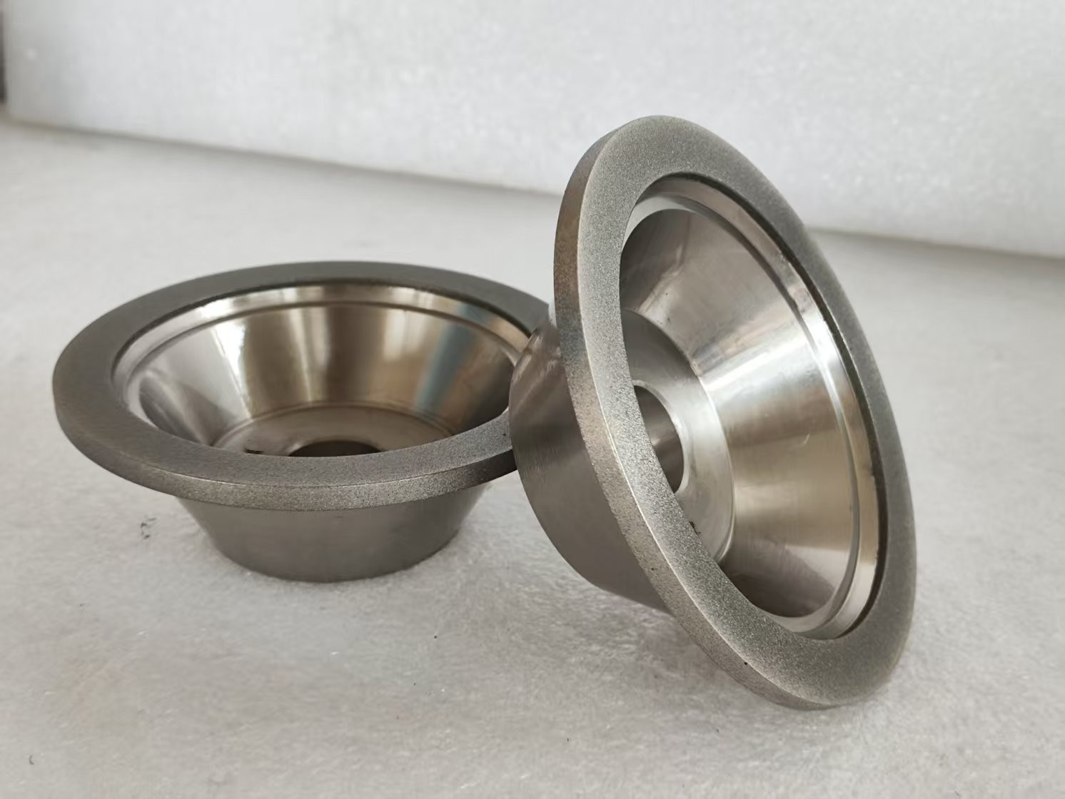- **Forma di tazza**: consente un facile accesso a geometrie complesse degli utensili (ad esempio, macinazione a flauto, affilatura ad angolo di rilievo).