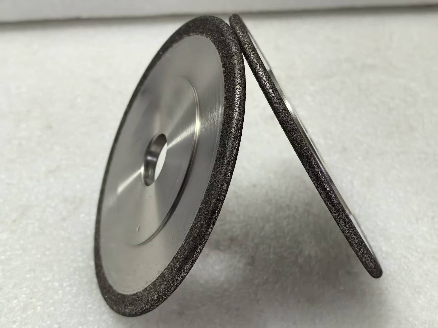 Rotole di macinazione CBN elettroplataIè una ruota di base in acciaio che ha un singolo strato sottile di grani abrasivi CBN attaccati alla sua superficie tramite un rivestimento elettroplata (nichel).I granelli CBN sono incredibilmente duri (secondo solo al diamante) e sono specificamente formulati per la macinazione di metalli ferrosi duri come l'acciaio ad alto tenore di carbonio o cromato delle motosega..